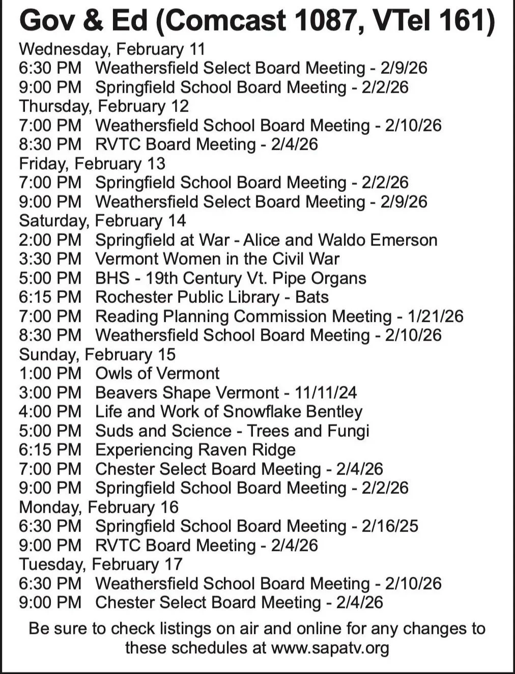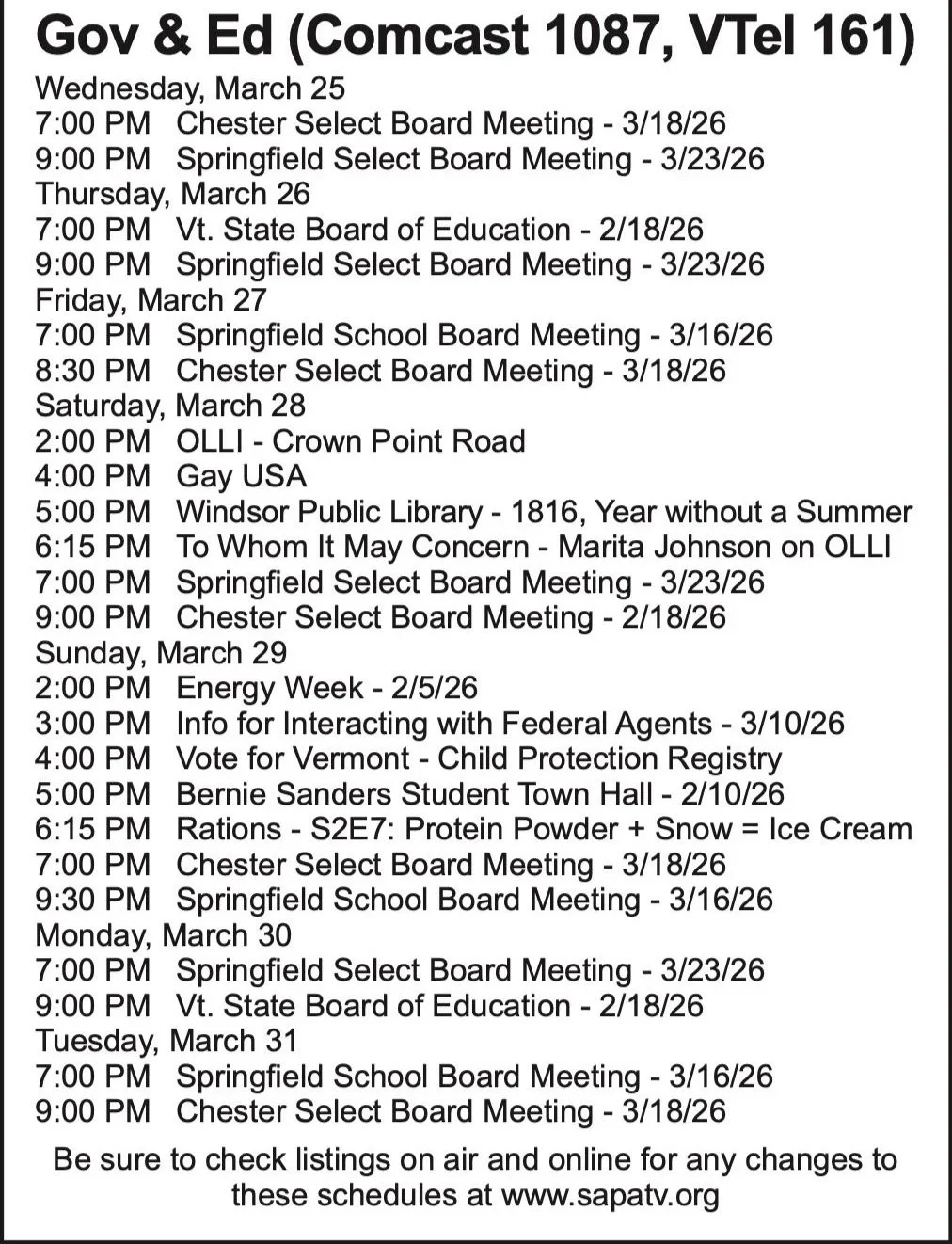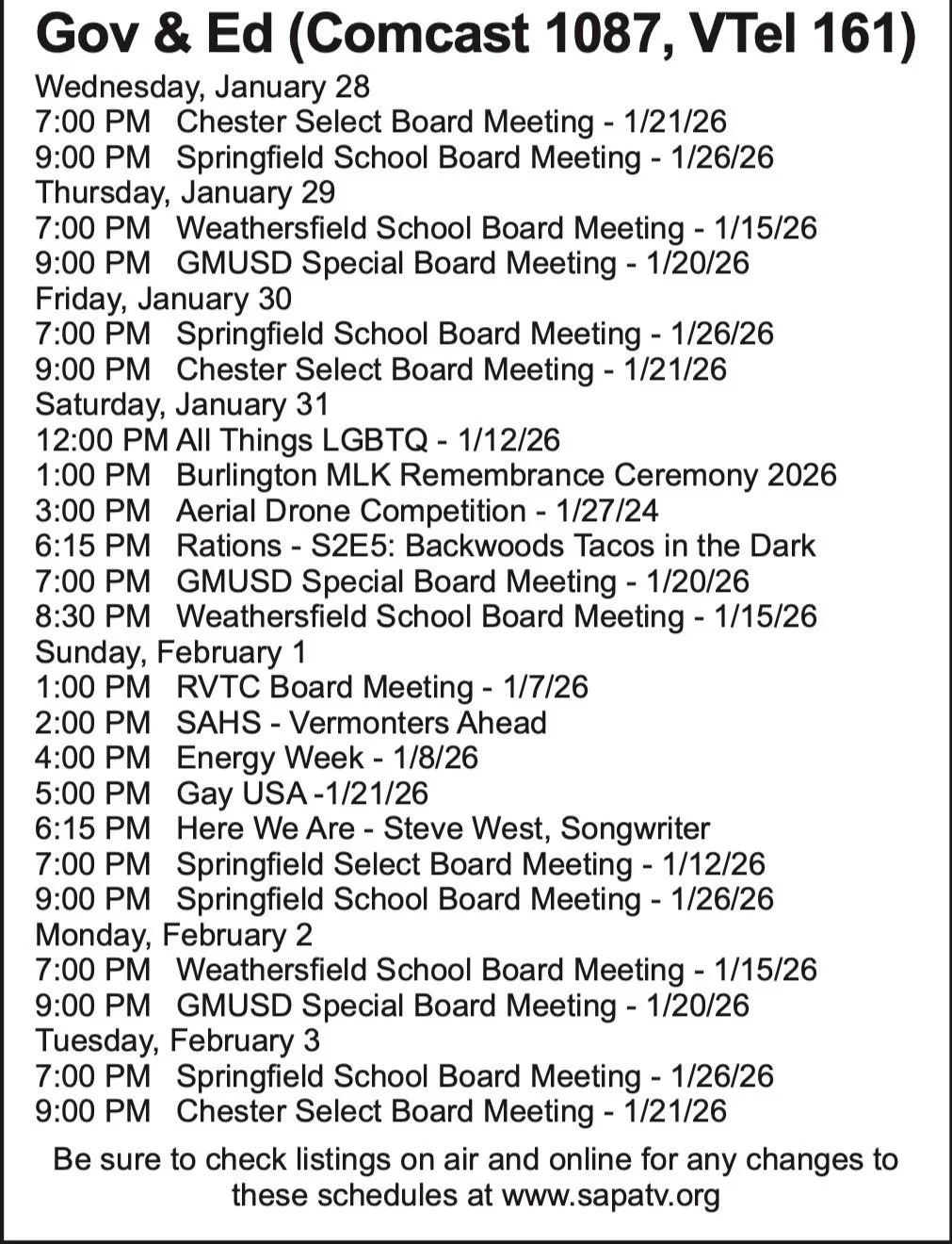 Weekly Program Schedule ~ Weekly Program Schedule ~ Weekly Program Schedule ~ Printable Schedule - Public Channel Printable Schedule - Gov/Ed Channel